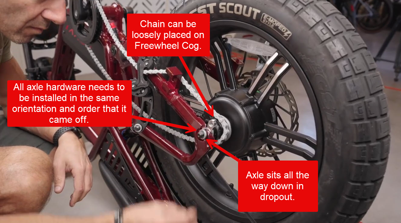 Step 5: Reinstall the rear wheel and axle hardware