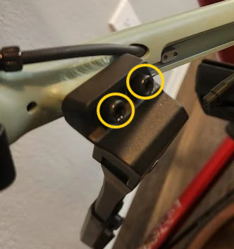 The motor is located in the rear wheel of the bicycle and will need to be unplugged to remove the wheel. The first step is to remove the composite cover that protects the motor cable. This piece is held in place by four bolts as shown in the following image.